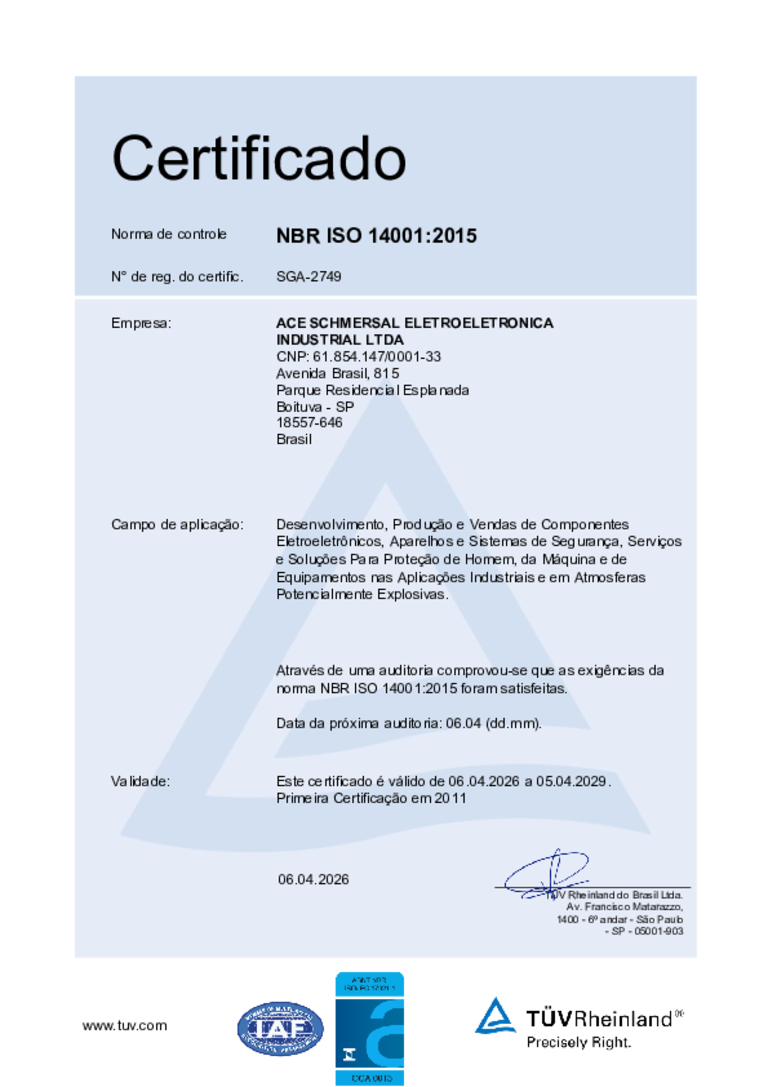 All Schmersal Group sites developing and producing switchgear for explosion-protected applications also have certification in accordance with DIN EN ISO 9001, which stipulates certification and approvals for the QM system based on the applicable guidelines and standards. This is another feature of the high quality standards of the Schmersal Group. This guarantees the requisite safety in the very sensitive area of (safety) switchgear for explosion-risk environments.